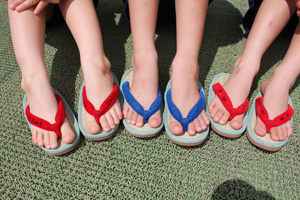 健康ぞうりほんごう幼稚園には、い草の健康ぞうりがあります。「気持ちいい!」と子どもたちに好評です。 -