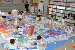 タオル服タオル服を着て、汚れを気にせず思いっきり造形あそびを楽しみます。 -